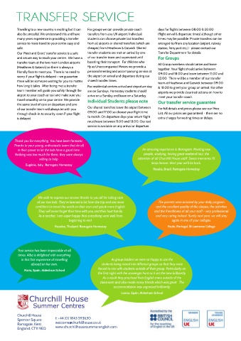 transfer team at the two main London airports boarding their transport. For children who All Group members should arrive and leave