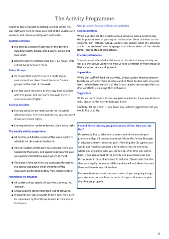 ● Daytime activity sessions each last 1-1.5 hours, with Students must attend all activities so, at the start of every activity, we