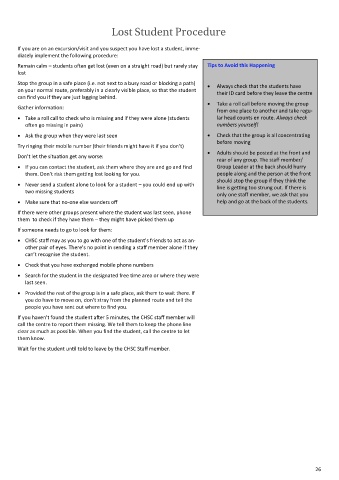 If you are on an excursion/visit and you suspect you have lost a student, imme-