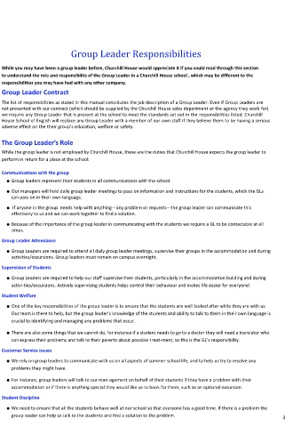 While you may have been a group leader before, Churchill House would appreciate it if you could read through this section
