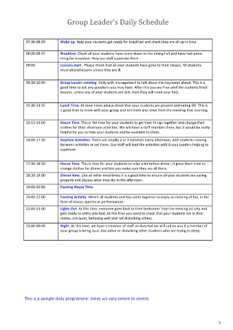 07:30-08:30 Wake up. Help your students get ready for breakfast and check they are all up in time.