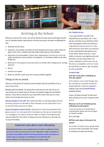 Arriving at the School Our Transfer Service