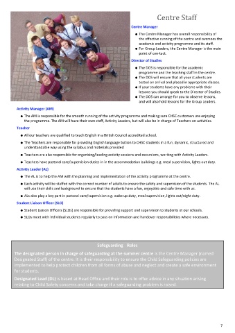 ● Teachers are also responsible for organising/leading activity sessions and excursions, working with Activity Leaders.