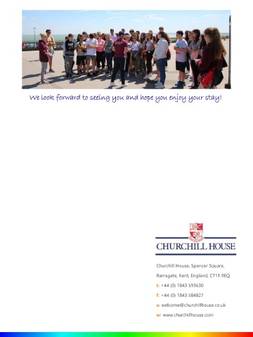 We look forward to seeing you and hope you enjoy your stay! Churchill House, Spencer Square, Ramsgate, Kent, England, CT11 9EQ t: +44 (0) 1843 593630 f: +44 (0) 1843 584827 e: welcome@churchillhouse.co.uk w: www.churchillhouse.com