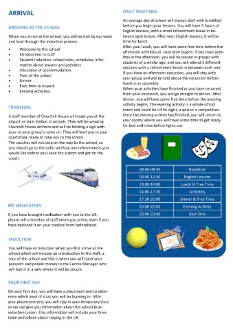 ARRIVING AT THE SCHOOL before you begin your lessons. You will have 3 hours of