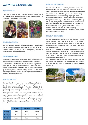 mixture of sports, drama, art, music and games, there will be Full day excursions are similar to how half day excursions
