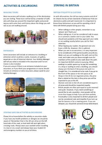 ACTIVITIES & EXCURSIONS STAYING IN BRITAIN